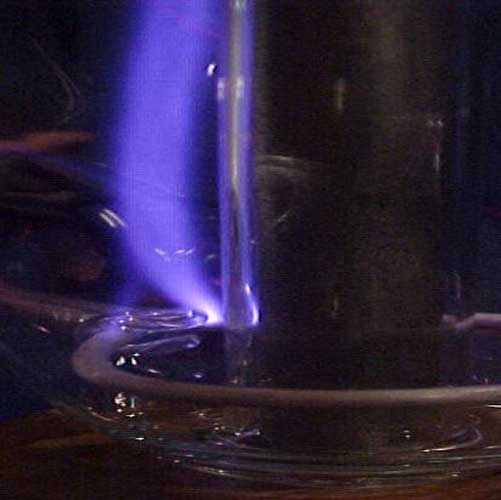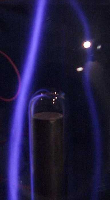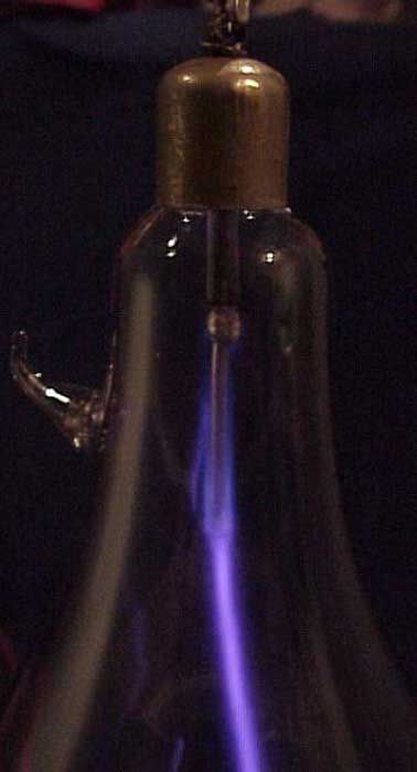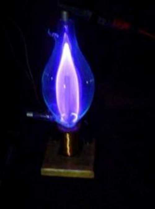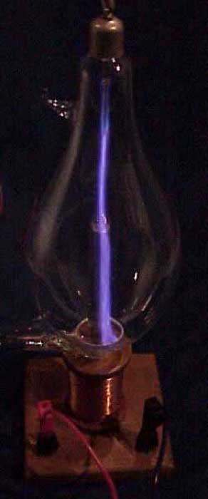 Im Gegensatz zu einer Geißler-Röhre entsteht im Inneren der De la Rive eine Fadenstrahlentladung, welche