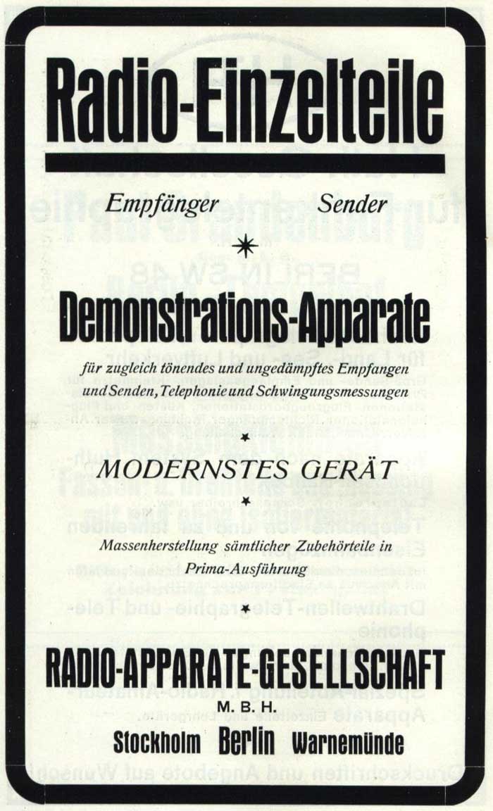 Es geht hier auf dieser Seite um Historische Inserate, wie sie in Zeitschriften etc alltäglich waren.
