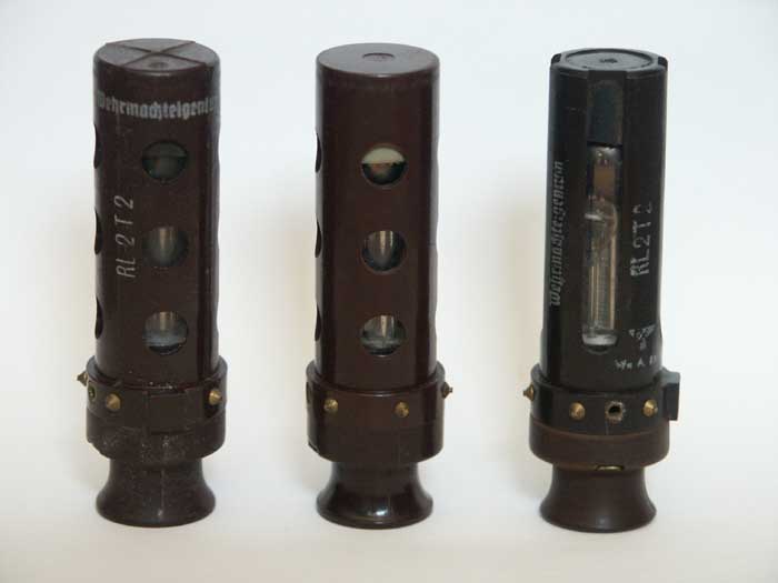 Beachtenswert ist der bei jeder der drei Röhren anders geprägte Gehäuseboden :