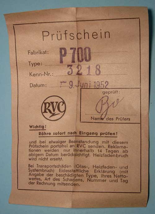 Die folgende P700 stammt wieder von Valvo, Hamburg :