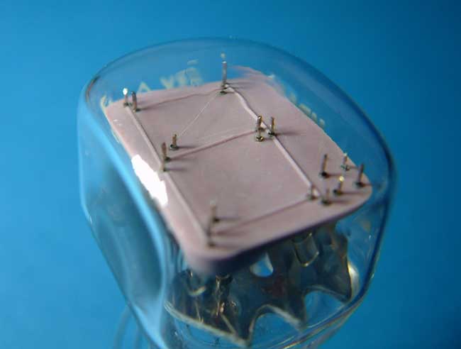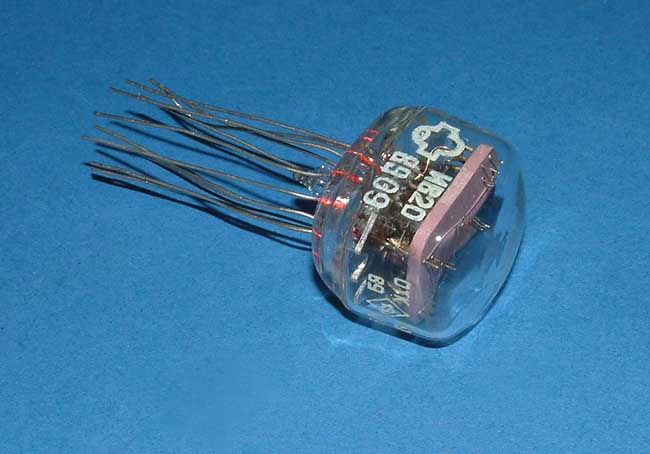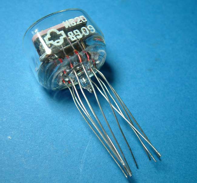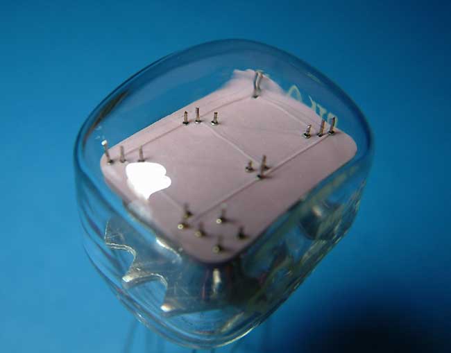 Die Minitron-Röhre IW20 ist eine Glühfaden-Ziffernanzeigeröhre, ein "Kopffüßler".