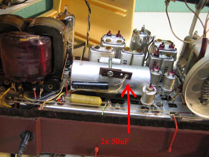 Jetzt noch die beiden verbliebenen Elkos, an der ECL86 und an der EBF89 austauschen. Auch der Röhrenkondensator