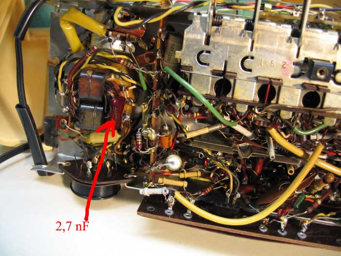 über der Primärwicklung des NF Trafos musste wegen Isolationsmängel (knistern im Lautsprecher) ausgetauscht