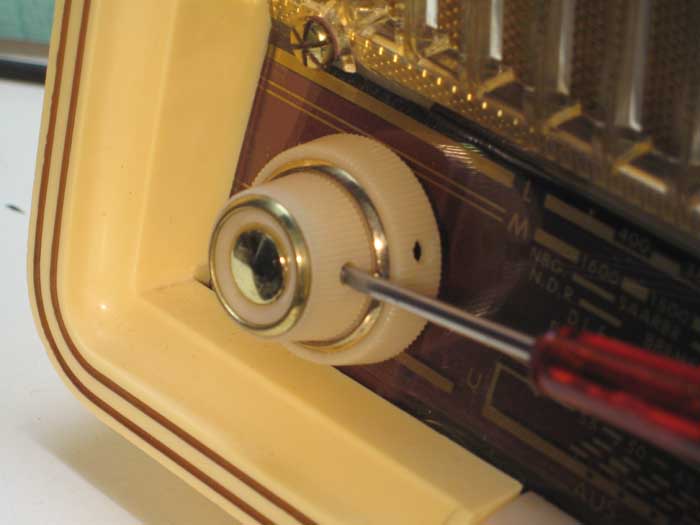 jetzt vorne die Einstell-Knöpfe entfernen, dazu mit einem passenden Schraubenzieher die Feststellschrauben lösen