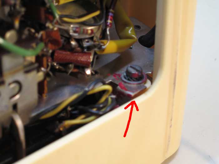 das Gerät herumdrehen und die beiden Befestigungsschrauben des Chassis abschrauben:
