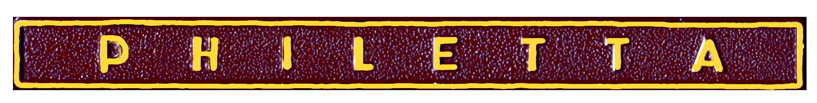 Das aus Metall gefertigte Philetta Logo ist oft verloren, deshalb hier ein Bild des Logos in Originalgrösse. Man kann