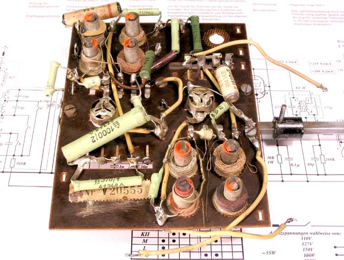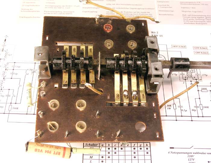 Nach Demontage des Wellenschalteraggregates sträubte sich mir das Gefieder: so kann natürlich ein Radio niemals