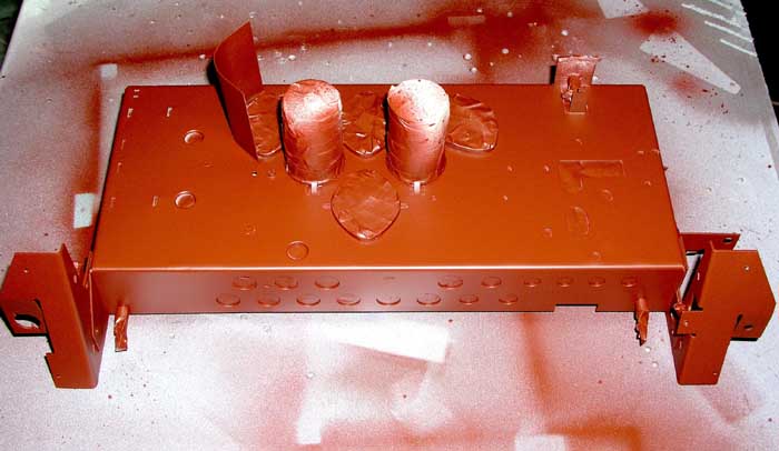 Wobei: genau bei diesem Chassis hat der Vorführeffekt zugeschlagen. Die verwendete Sprühfarbe war nicht ganz einwandfrei, die Spraydose "rotzte" trotz intensivem Schütteln größere Partikel heraus. Baumarktqualität halt...