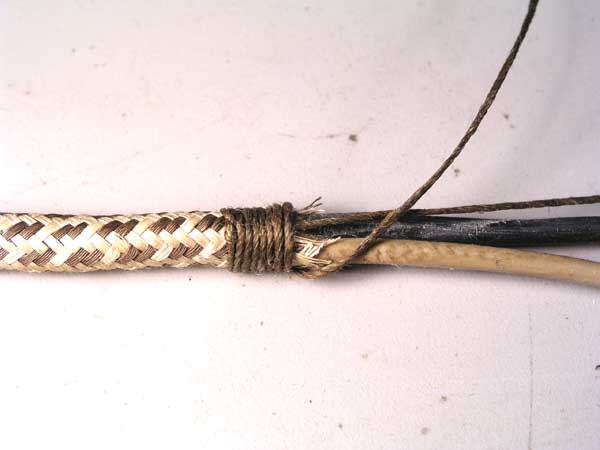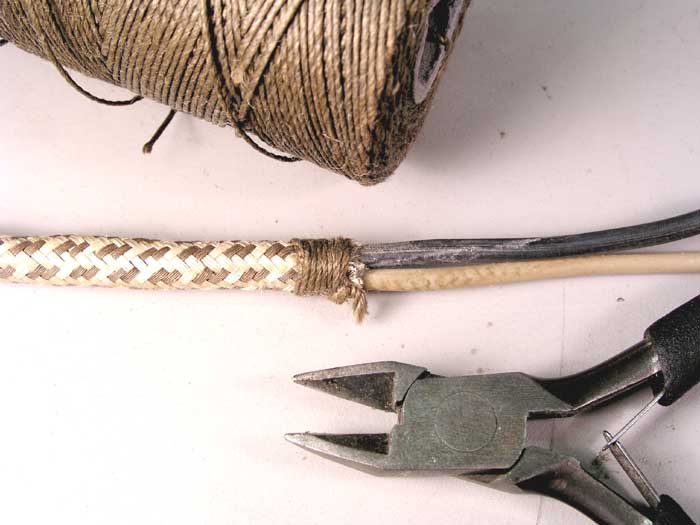 Hierzu gehe ich wie folgt vor: Man nehme Omas Garnrolle mit etwas festerem Garn, eine scharfe Schere oder kleinen Seitenschneider - scharf (!), um mit ihm den Stoffmantel sauber schneiden zu können!