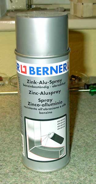 Zum Lackieren verwende ich Zink-Alu-Spray von BERNER. Es trocknet sehr schnell, verläuft ausgezeichnet und gibt einen