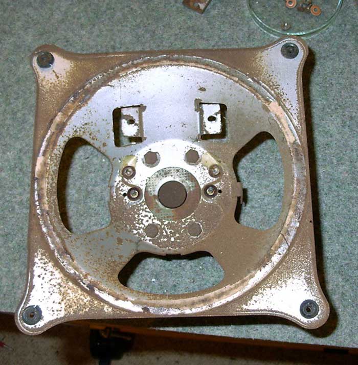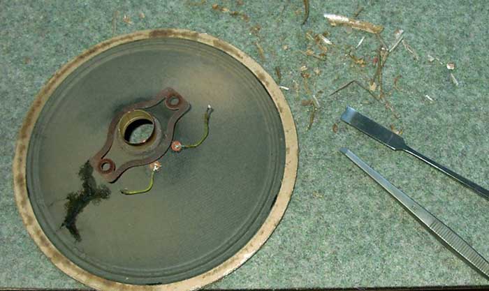 Dabei stellte ich fest, dass die Tauchspule am Dorn des Magneten kratzte. Der Dorn war durch Rost "aufgeblüht"