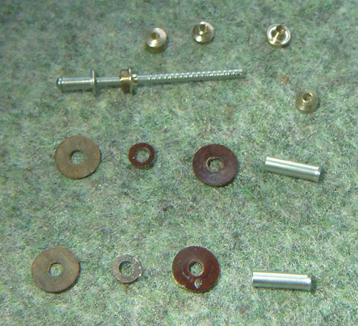 Messing-Rundmaterial einige Teile zum Ausformen des Nietkopfes gedreht. Sie haben in der Mitte ein kleines Loch von 2,1mm