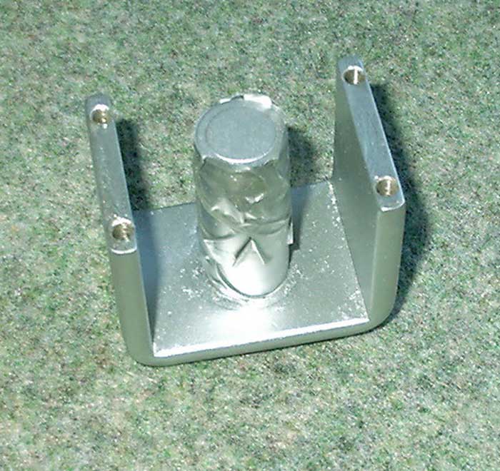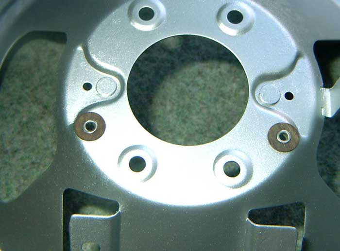 Bevor der Magnet angeschraubt wird, müssen aber noch die beiden Kontaktnieten eingesetzt werden. Dazu habe ich mir aus