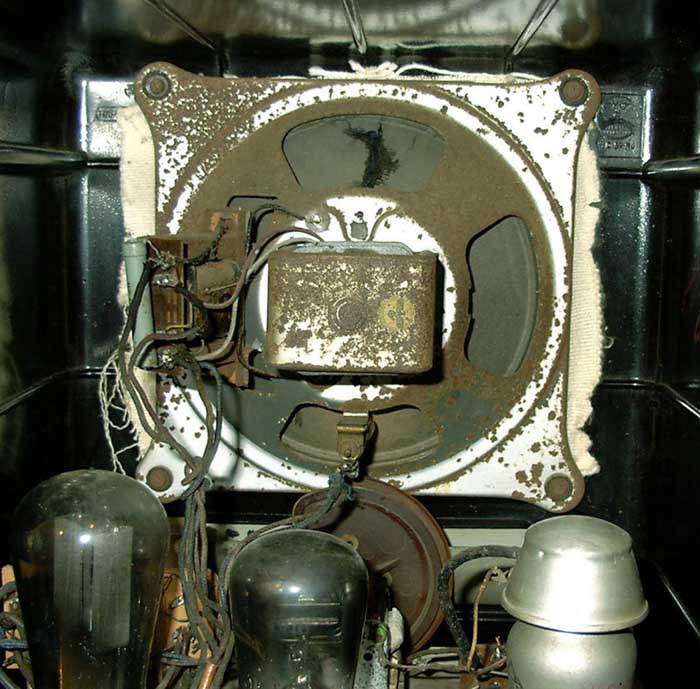 am Korb auch schon gelöst hatte (der Rost ist unter die Pappe gekrochen), beschloss ich, den ganzen Lautsprecher zu