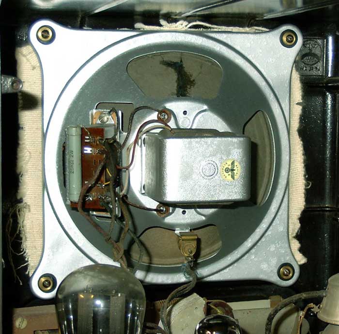 Unter der Spule befindet sich eine dünne Filzscheibe (sie sieht ganz gut an der Schwingspule, die, einige Fotos weiter