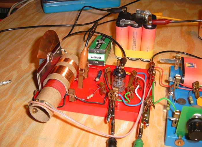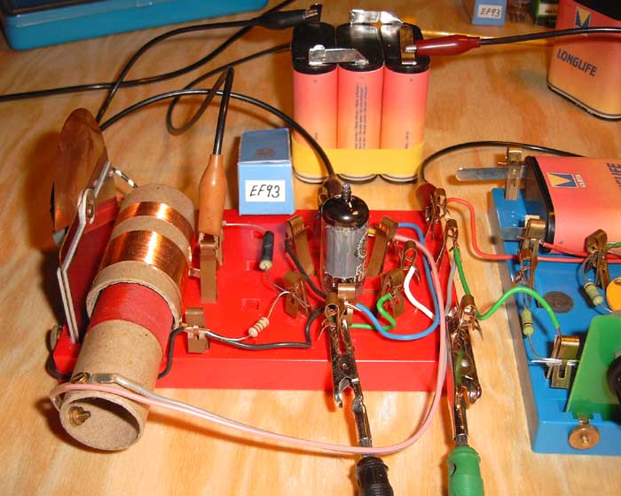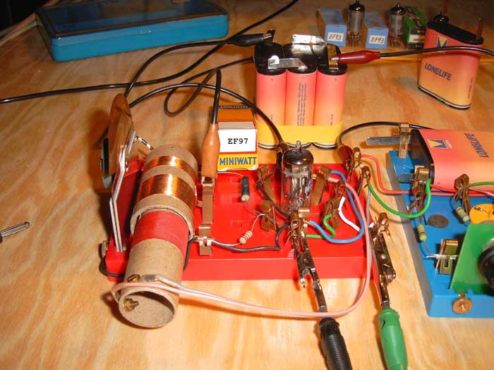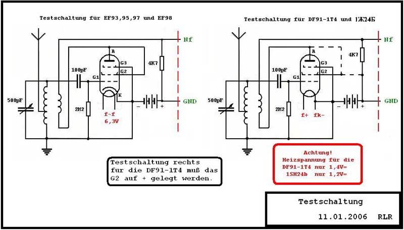 Der Testaufbau ist die Standard-Triodenschaltung des Radiomann mit induktiver Rückkopplung. Für die EF-Röhren