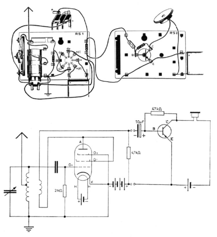 Diese Seite zeigt den aus dem Bauanleitungsheft in der Seite 78/79/80 beschrieben Aufbau eines Audionempfängers