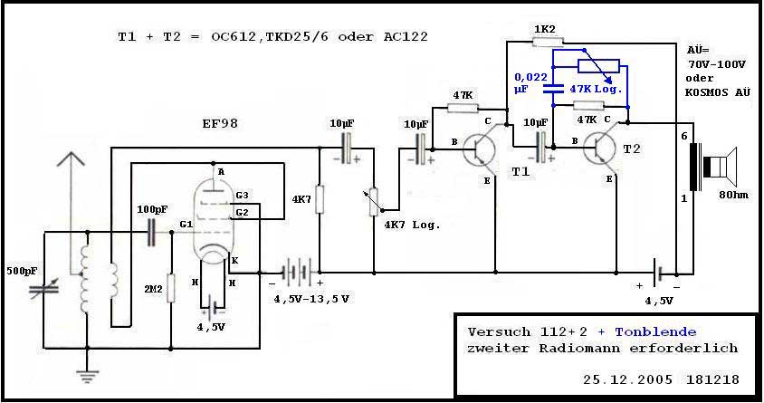 Die Bauteile die der Tonblende dienen sind im Schaltbild blau eingezeichnet.