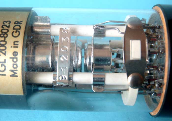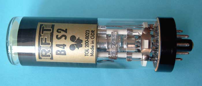 Die folgenden Fotos zeigen die Oszillograph-Röhre B4 S2 (RFT).