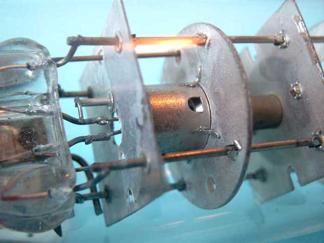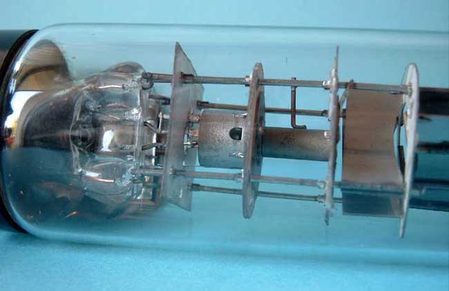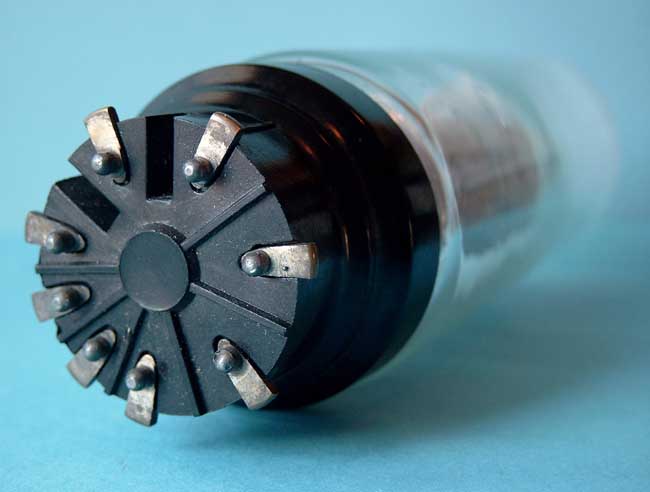 Die folgenden Fotos zeigen die Oszillograph-Röhre DG3-2 (Valvo).