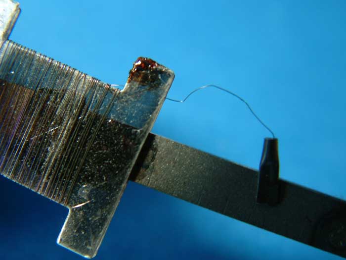 20 Volt (mehr gab das verwendete Netzteil nicht her) bei 0,055A benötigten die Kontakte etwa eine Munute um sich zu