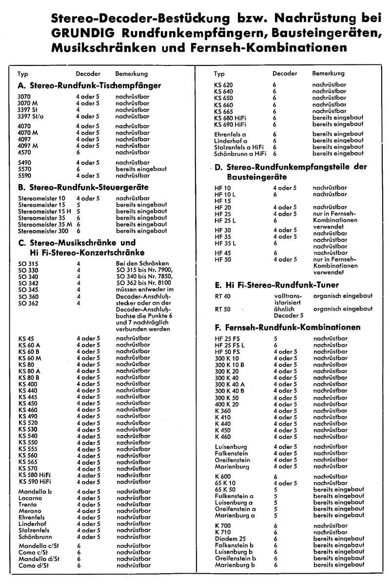 Der erste gezeigte Grundig-Dekoder ist der Type IV.