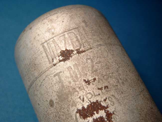 Die unansehnlicherere, die am stärksten verrostete der beiden Röhren habe ich vorsichtig von ihrem Metallmantel