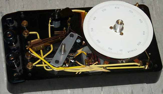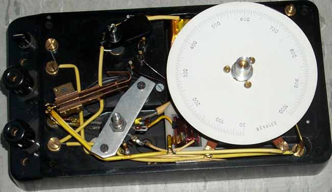 hochwertigen Glimmer-Kondensatoren und Widerständen bestehen, die geeichte Skala, den Meßbereich-Umschalter und