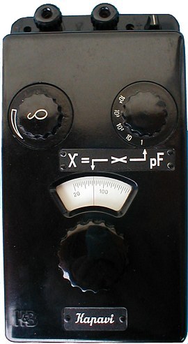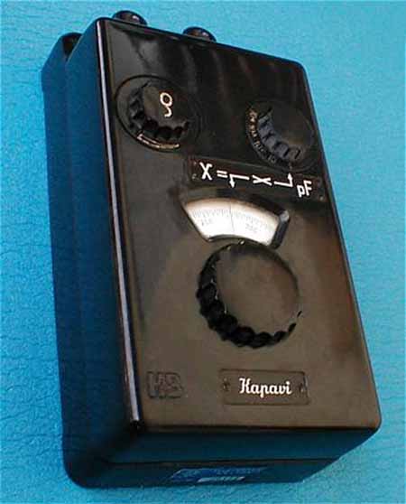 Die Meßbrücke "Kapavi" enthält in einem formschönen, schwarzen Preßstoffgehäuse