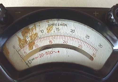 Leider befindet sich die Skala in einem sehr desolaten Zustand; das Meßgerät selbst ist aber noch voll