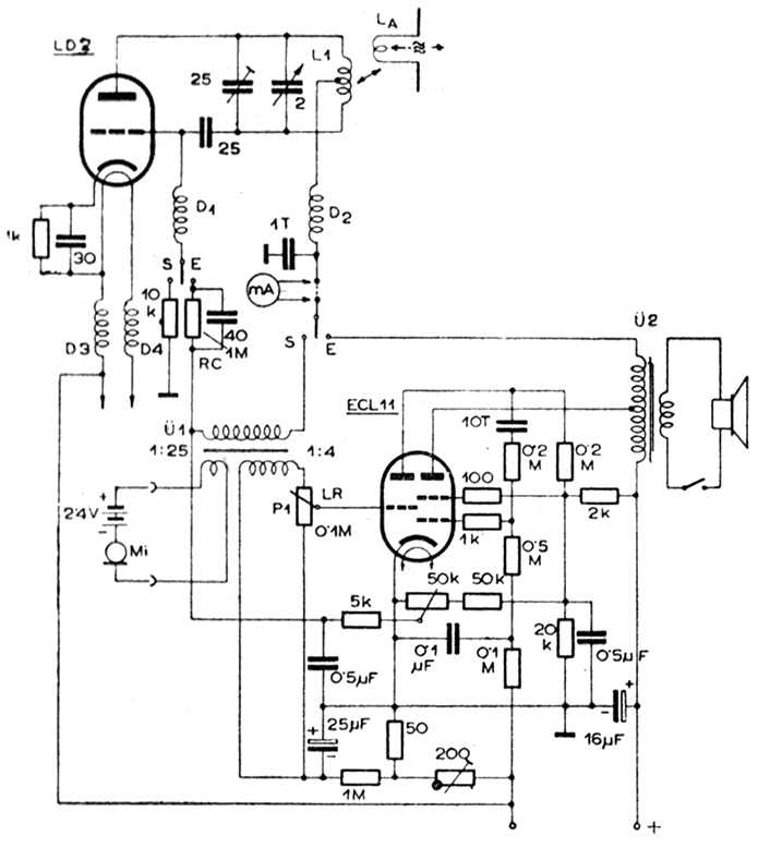Die LD 2 wird in der Sendeschaltung als Oszillator und in der Empfangsschaltung als überrückgekoppeltes Audion