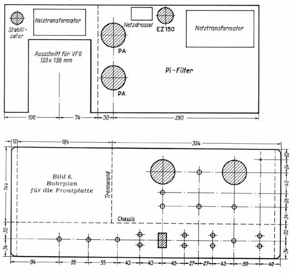 beträgt 490 x 205 mm. Die Raumaufteilung wird wesentlich von den Maßen des G e l o s o - VFO und von dessen Skala