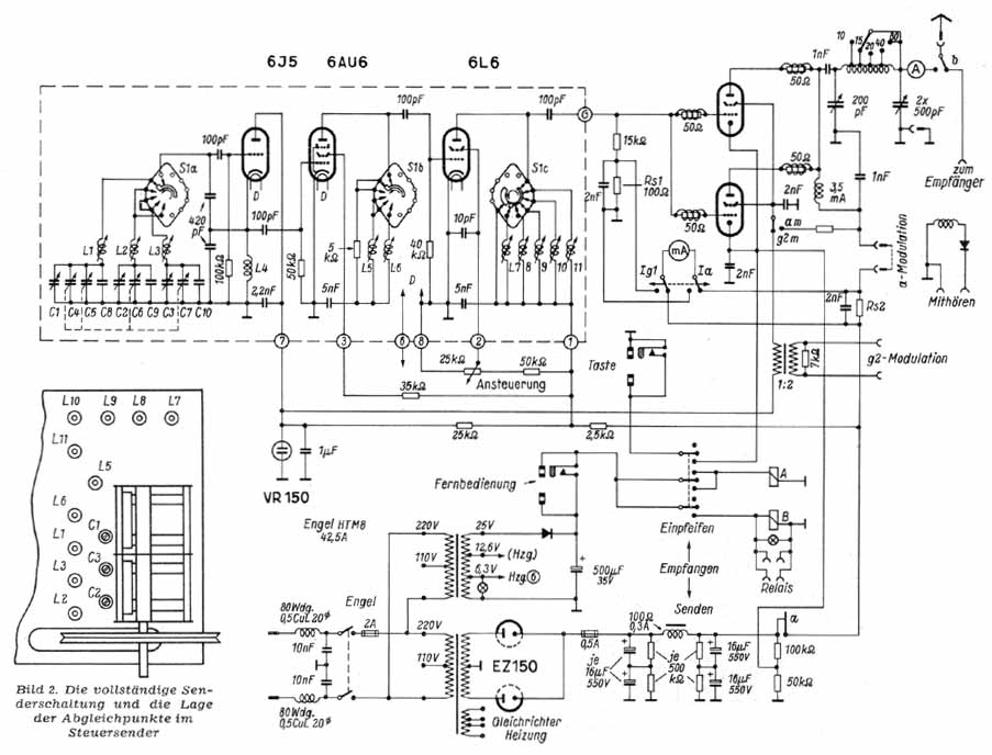 Das Modulatorrelais arbeitet genau umgekehrt: Beim Erregen schaltet es die Modulator-Anodenspannung ein.