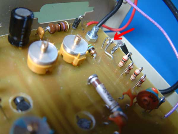 (Am lilafarbigen Draht, der mit seinem losen blanken Ende im Gerät "hängt" (am Kabelbaum mit befestigt),