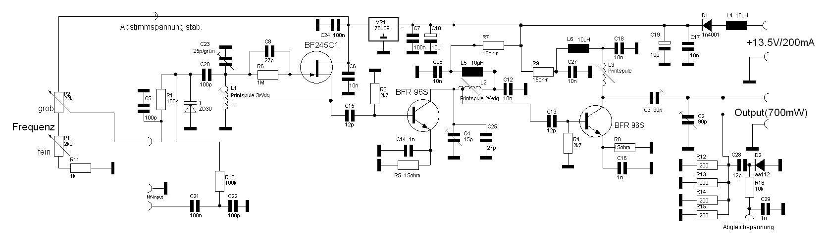 Bei der hier beschriebenen Baugruppe handelt es sich um einen 3stufigen UKW-Sender,der über eine Kapazitätsdiode