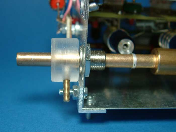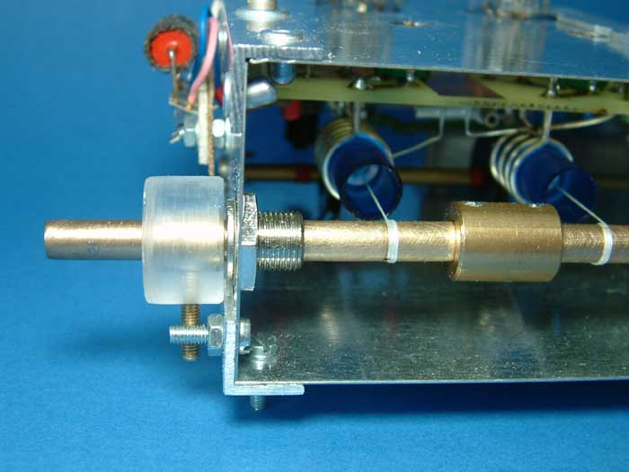 Die Achslagerung auf der gegenüberliegenden Seite, hier wird der Abstimmknopf, bzw. der Skalentrieb aufgesteckt :