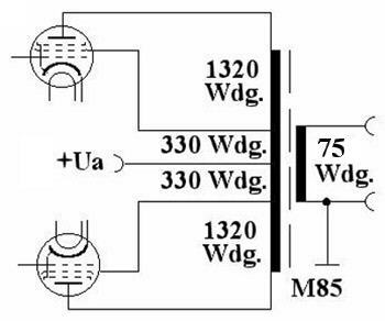 Gegentakt-Endstufe. Dabei liegen die Schirmgitter an Anzapfungen der Primärwicklungen des Ausgangstransformators. Das