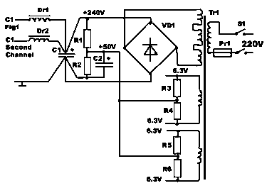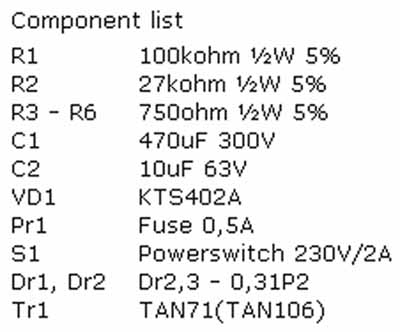 Die beiden Drosseln im Netzteil haben je 2,3 H / 0,2 A.