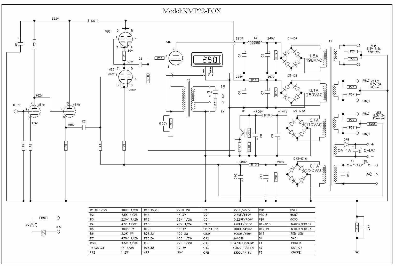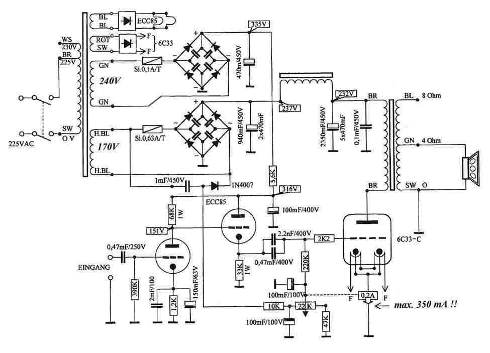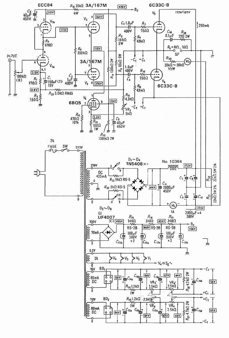 Von meinem Freund Mario bekam ich vor längerer Zeit das Schaltbild des Verstärkers zur 6C33C.