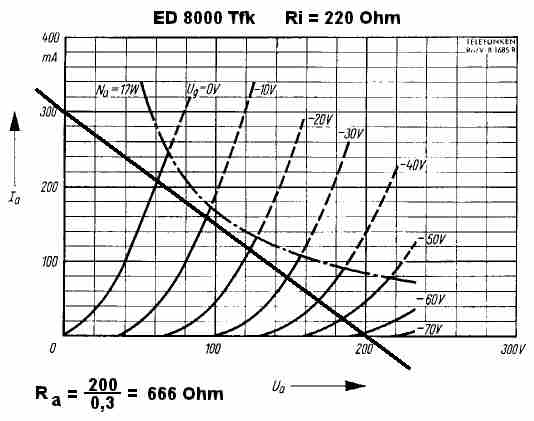 Die Werte dieser Röhre sind allseits bestens bekannt, so daß man anhand des Diagramms zu dieser Röhre