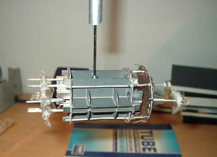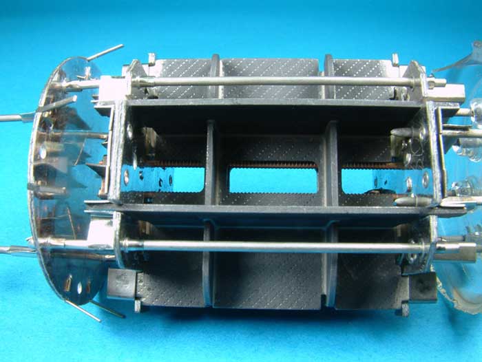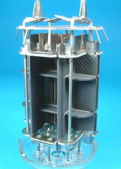 Das folgende Foto zeigt die vier riesigen Getterhalter und die beiden Positionierstäbe, die in zwei der drei