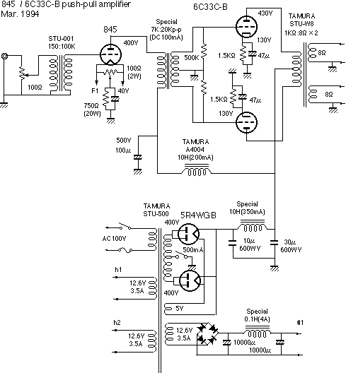 Vom Reinhard erhielt ich die folgende Schaltung eines weiteren Eintakt-A-Verstärkers mit der 6C33C zugesandt. Ich habe