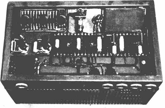 Widerstände des eigentlichen Verstärkers befinden sich auf einer großen Pertinaxplatte, während die