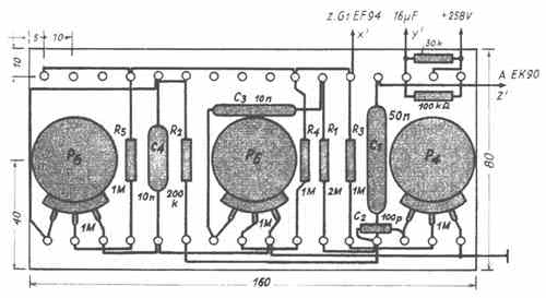 Die Pertinaxplatte für das Entzerrerglied hat die Abmessungen 160 x 80 x 1 mm.