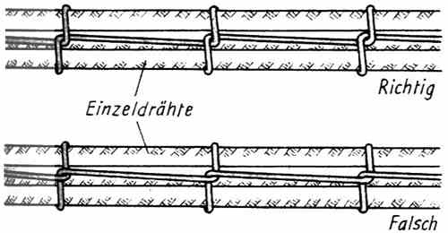 die Drähte einzieht und abschließend bündelt. Die Drähte sollen gut isoliert und bruchfest sein; am