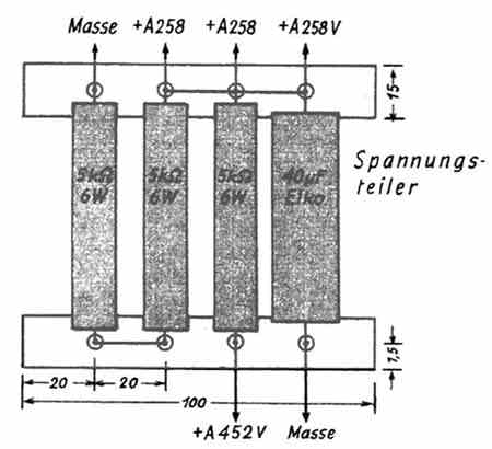 5-kOhm-Widerstände, 6 Watt (Dralowid) und der 40-µF-Elektrolytkondensator befestigt sind.