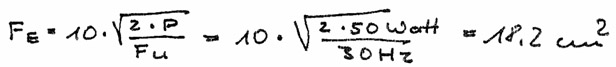 Als unterste Grenzfrequenz möchte ich 30 Hz (Fu). Daraus errechnet sich ein Eisenquerschnitt von (Fe). Die