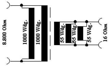 für die 16 W - Wicklung 67 Wdg., für 8 W 47 Wdg. und