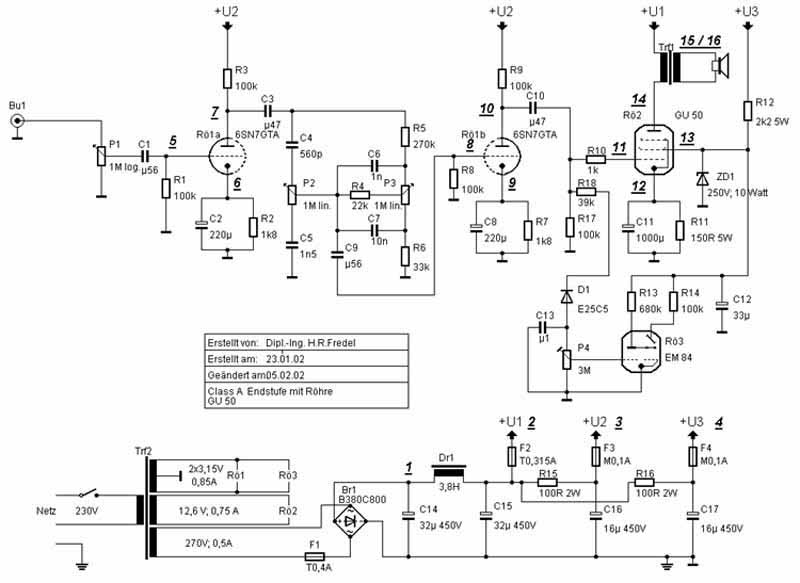 Verstärker mit GU 50 in Klasse A - Betrieb