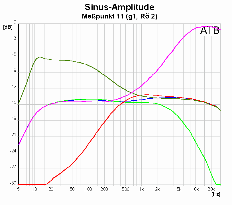 Dunkelgrüne Kurve: Höhenregler Mittelstellung, Tiefenregler Rechtsanschlag